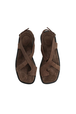 Introducing The Selene. Set atop a cushioned leather footbed and featuring a toe loop, connected criss-cross straps to encase the foot, and finished with a buckle around the ankle for a secure and adjustable fit. The slimline silhouette combines minimal design with everyday comfort.