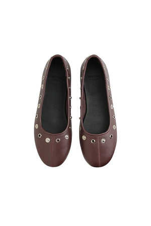 The Luma Studded Ballet Flat effortlessly elevates a timeless silhouette. Crafted from premium leather and featuring eyelet button studs, a rounded toe and center seam details. Available in four shades, The Luma is the perfect style to elevate your everyday wardrobe.