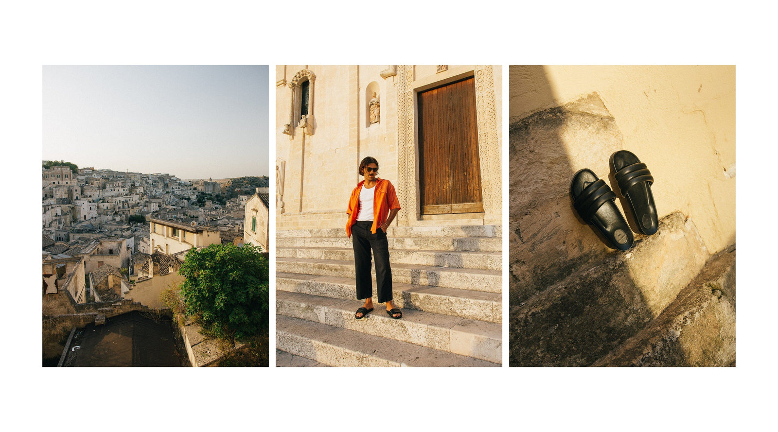 We shot most of The Bali Tailor in Matera, Italy. It’s the third oldest city in Europe and a dream location to shoot with ancient textures everywhere you look. I’d say we had a pretty ideal few days there, and they went something like: start out with breakfast in one of the ancient cave hotels, stumble around the millenniums-old streets in search of the perfect espresso, explore the caves and churches, enjoy some famous Puglian pasta and an aperol (or five), do some shopping, quick siesta, and then grab dinner under the moonlight. They were some of the slower days of our trip, and some of the best.